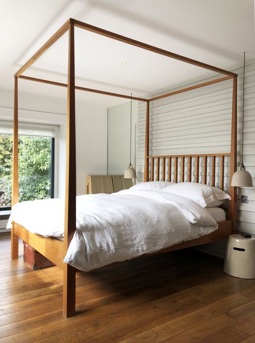 The Four Poster bed is a timeless and elegant piece of furniture designed for those who appreciate the beauty of traditional craftsmanship. Commissioned by master cabinet maker Andrew Varah, this Shaker inspired, contemporary yet timeless bed is built with American cherry hardwood. With its elegant design and quality craftsmanship, this bed is perfect for creating a comfortable and stylish sleeping space.